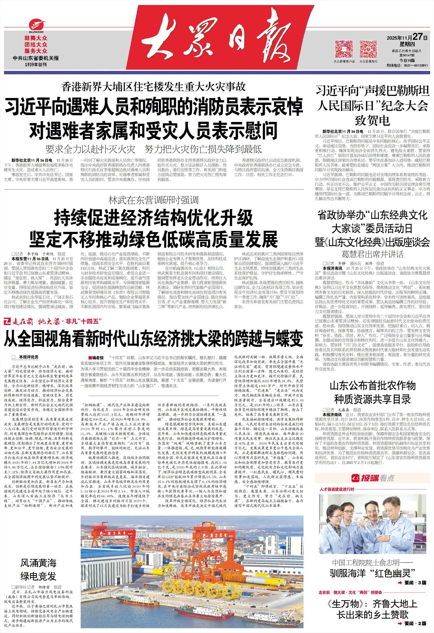 “十四五”即将收官,“十五五”征程将启。展望未来,山东必将以更大担当、更大作为,努力“走在前、挑大梁”,在新的更高起点上接续奋斗,奋力谱写中国式现代化山东篇章。