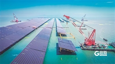 眼下,即墨海上光伏项目海上施工现场一片繁忙,随着吊车“手臂”不停地舞动,一块块光伏板被组装到钢平台上。目前,项目一期首批并网发电,所产生的电能通过电缆输送到陆地,经过升压后进入千家万户。