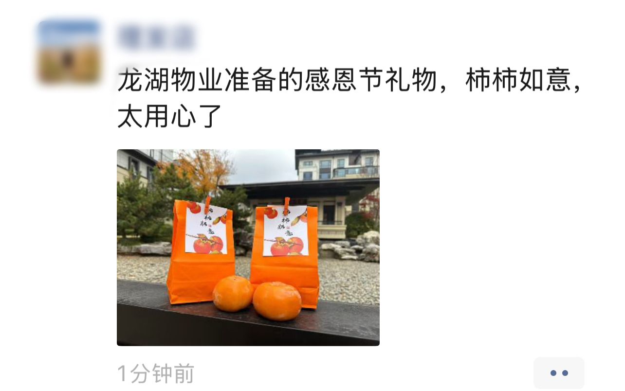 “一大早收到物业送的柿子,太惊喜了!包装很精美,寓意也好,感觉一整天都会有好运气。”一位正准备送孩子上学的业主王女士开心地表示。这份小而美的礼物,以其独特的巧思和美好的祝福,迅速在业主朋友圈里“刷屏”,成为这个感恩节最温情的社区记忆。