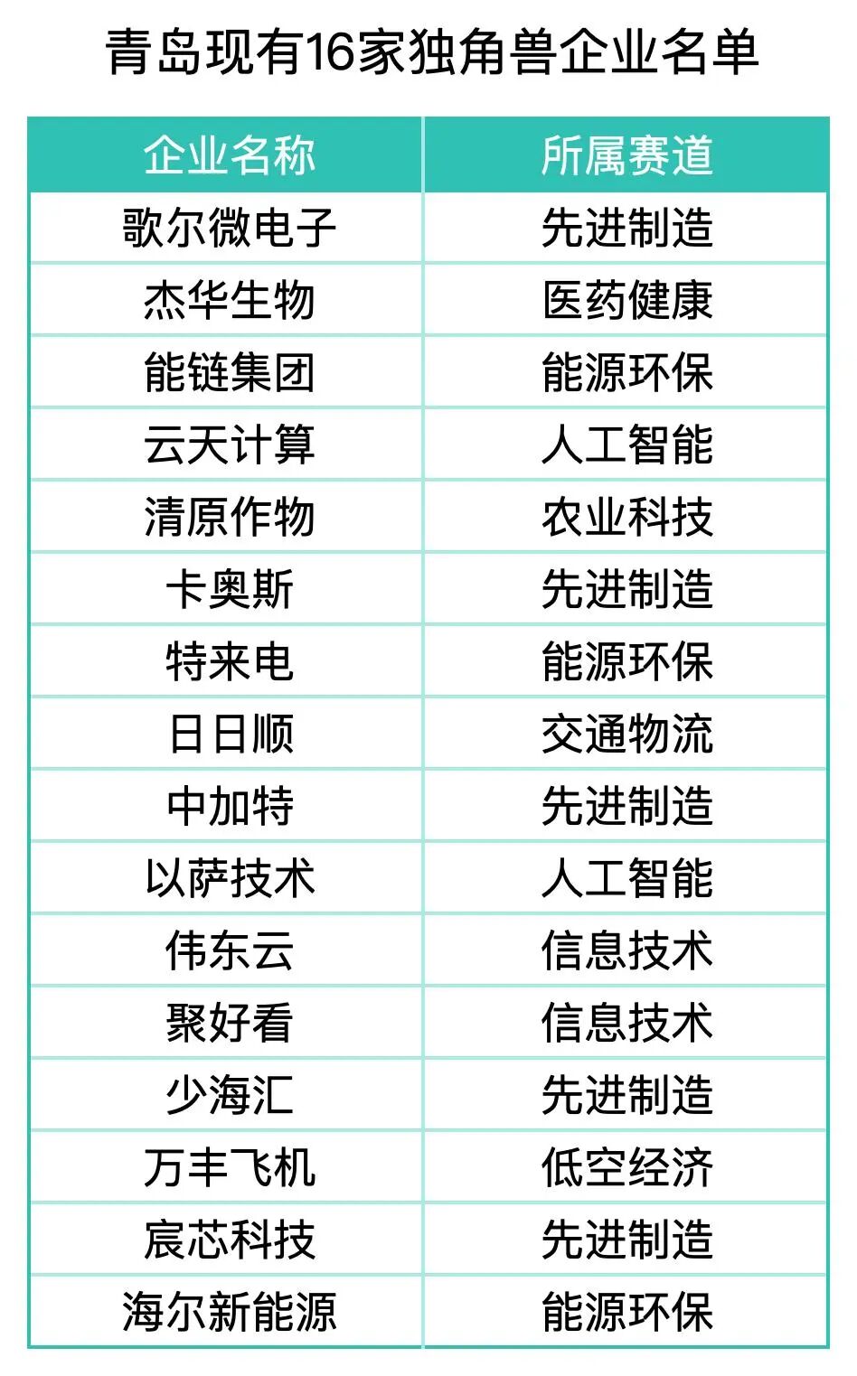 算上此前认定的14家独角兽企业,以及已经“毕业”的3家上市独角兽企业,青岛累计培育19家独角兽企业。