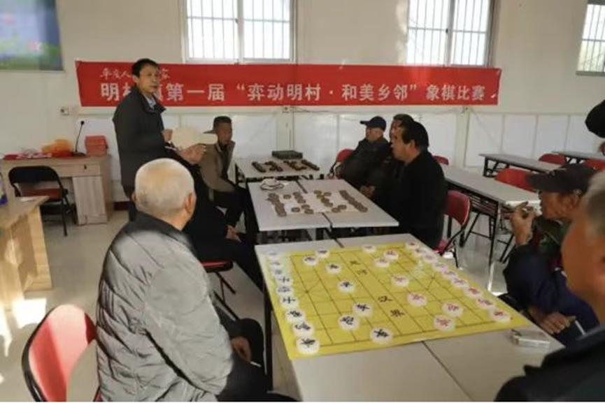 以棋为媒,凝聚乡村活力;以棋化风,书写振兴新篇。为丰富居民文化生活,弘扬传统棋类文化,展现群众积极向上的精神风貌,明村镇近日成功举办“弈动明村·和美乡邻”象棋比赛。活动不仅为棋类爱好者搭建了切磋交流的平台,也进一步密切了邻里关系,丰富了乡村精神文化生活。下一步,明村镇将围绕举旗帜、聚民心、育新人、兴文化、展形象的使命任务,持续深化精神文明建设,着力打造高质量文化社区,积极营造健康向上、充满活力的镇村文化氛围。