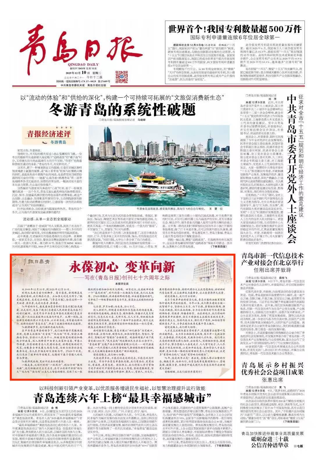 成长于改革开放的前沿之城,青岛日报的血脉里深深烙印着改革开放的基因。今年以来,我们聚焦建设全国一流智媒平台,坚持向上生长、向下扎根,重塑组织架构,强化技术赋能,深化在地战略,全力向全媒体时代优质内容的供给者、创造者、传播者转型。站在新起点,我们将始终高举改革开放旗帜,坚定不移推进主流媒体系统性变革,抱持长期主义,坚持内容为王,强化用户思维,加快培育传媒新质生产力,力争在媒体改革发展中勇立潮头。
