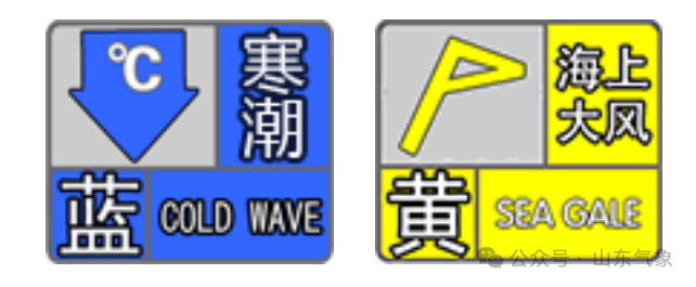 山东省气象台于12月11日11时00分继续发布寒潮蓝色和海上大风黄色预警。