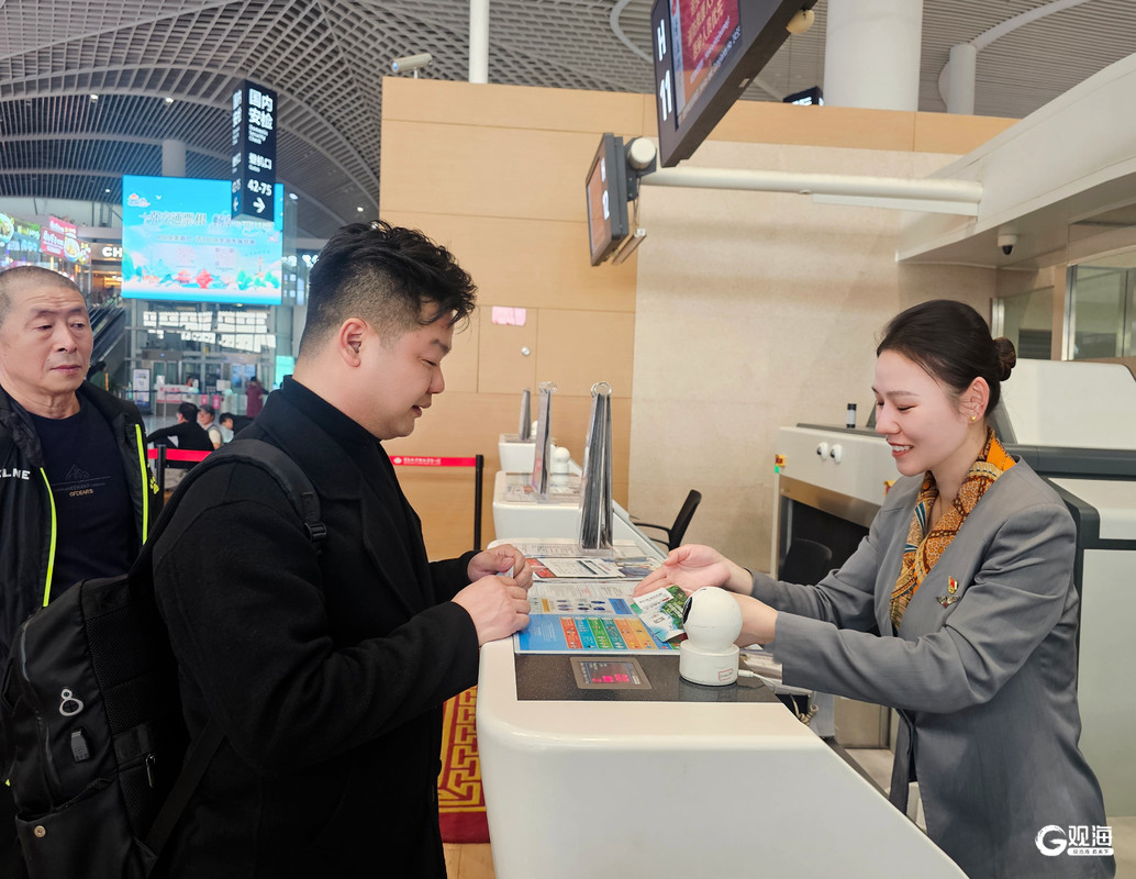 青岛日报社/观海新闻12月11日讯 “第一次坐飞机去哈尔滨看雪,从青岛出发申请了首乘服务保障,到了目的地有专人引导,全程都很安心!”来自青岛的王先生对双场首乘服务赞不绝口。