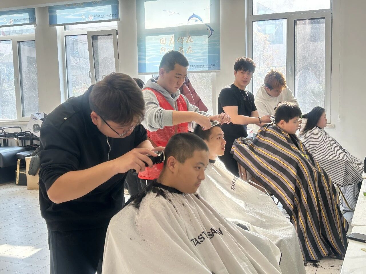 12月11日上午,青岛西海岸新区特殊教育中心迎来一场温暖的爱心义剪活动。此次活动由灵山卫街道办事处民政办牵头,教育卫生办协同组织,并联合华山社区品味沙龙的理发师团队共同开展,旨在为特殊儿童提供贴心服务。活动当天,理发师们提前抵达校园,在社区志愿者的协助下,为孩子们逐一修剪头发。他们以娴熟的技术和轻柔的动作,耐心调整理发节奏,同时通过温和的交流缓解孩子们的紧张情绪。校园内熟悉的环境与志愿者的陪伴,显著降低了孩子们对理发过程的焦虑感。此次义剪不仅是生活关怀的具体实践,更是灵山卫街道与特教中心推进“校社融合”的重要举措。此前,双方已通过专题推进会规划了多项融合活动方向,如节日文化体验、职业课堂进校园等,旨在通过持续互动搭建特殊儿童与社会之间的支持桥梁。