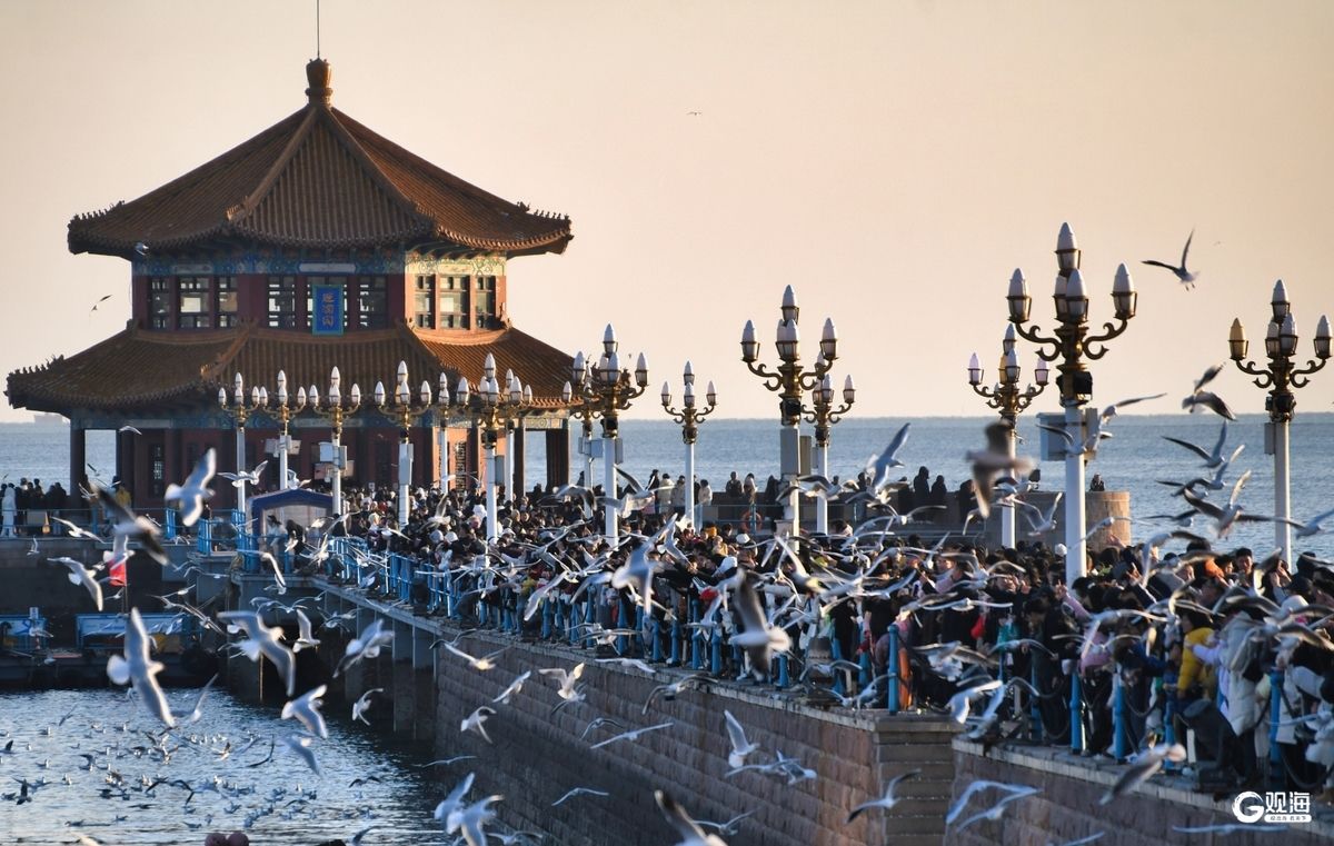 ●12月14日下午,栈桥景区在落日熔金的暮色中,迎来了一天中最富诗意的时刻:数百上千只海鸥翩然起舞,与驻足喂食的游客市民构成了一幅灵动的海滨冬韵图。详情>>>