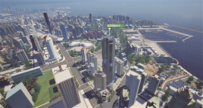 ■南京路1号大厦270°遥瞰最美浮山湾“数字孪生”效果图。