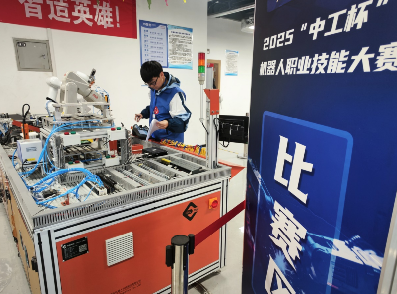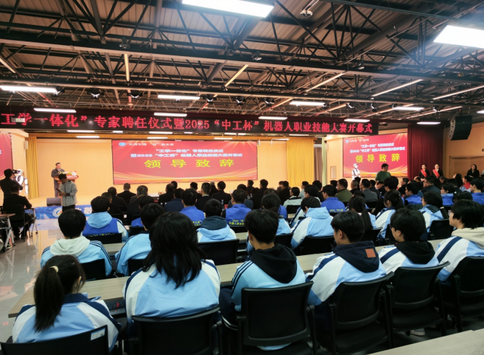 “技工教育,匠心筑梦,彰显时代担当;技能报国,强国有我,回应时代召唤”, 2025“中工杯”机器人职业技能大赛同时启幕。(汪鹏 毕晓丽)