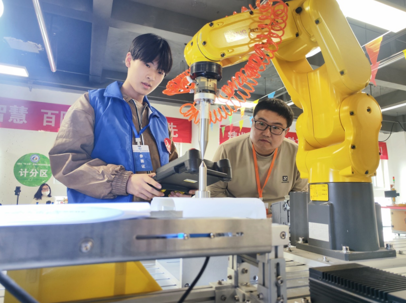 活动开始,根据安排首先进行了拜师礼,及向相关先进装备制造企业专家颁发聘书,同时,师生代表和企业家代表对此次活动进行了宣誓和发言,一致表示,在今后学习和工作岗位中,充分发挥特有技长和实践知识,应用与工学一体化中,为下步奠定坚实基础,把好未来发展的方向。本次举办机器人技术是智能制造的核心支撑之一,开展职业技能大赛既是检验职业教育教学成果的重要途径,也是培育高素质技能人才的关键举措。
