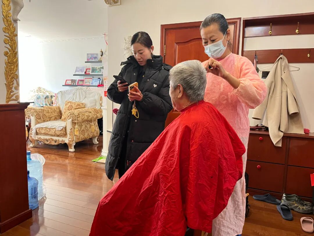 “咔嚓、咔嚓……”清脆的剪刀声,在书香门第社区“浙商情・书香韵” 为老义剪工作室里不停响起;而在社区的居民楼里,同样的剪刀声,也伴着欢声笑语回荡在长者家中。社区于12月24日下午以定点社区工作室与25日上午上门入户服务双模式的“为老义剪”,让爱心理发的暖流,既淌进工作室的方寸空间,也流进行动不便长者的家门,把最贴心的关怀送到每一位长者身边。