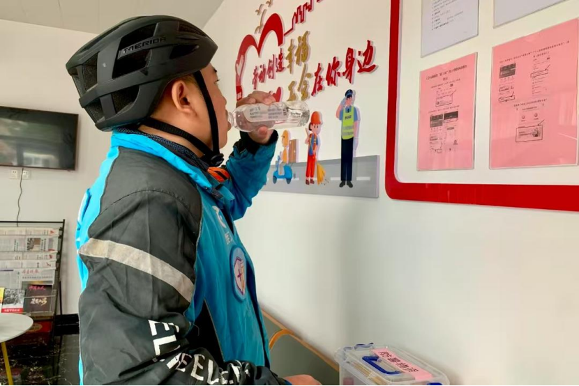 烈日当空,威海“环小蜂”骑手驿站内则是另一番清凉天地:外卖小哥可以在这里喝上一口水、给车充会儿电,或是翻翻书架上的书。这间50平方米的小屋,不只是歇脚处,更像是为奔波者筑起的温暖港湾,让忙碌的脚步有了安稳的归属。