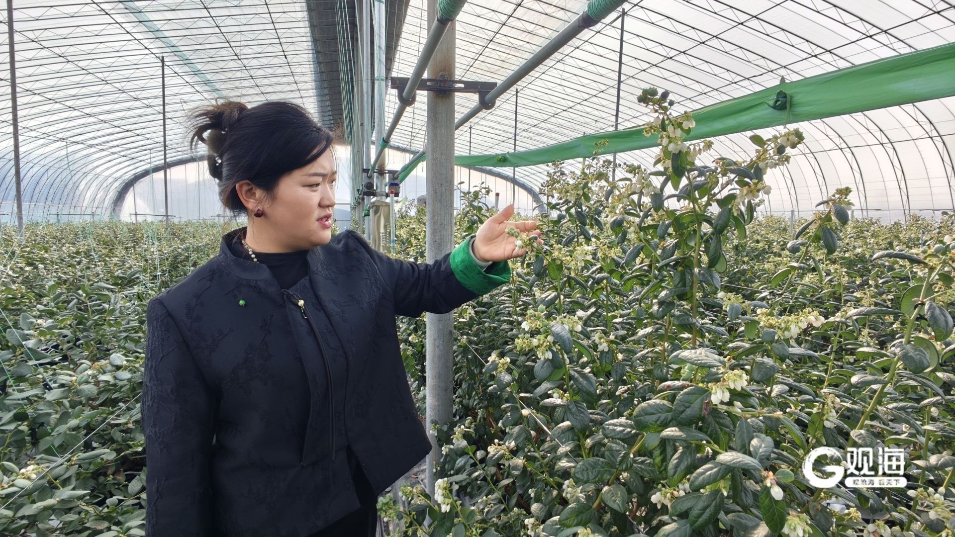 西海岸新区90后“新农人”孙芳与丈夫通过无土栽培等新技术培育出高品质大棚蓝莓
