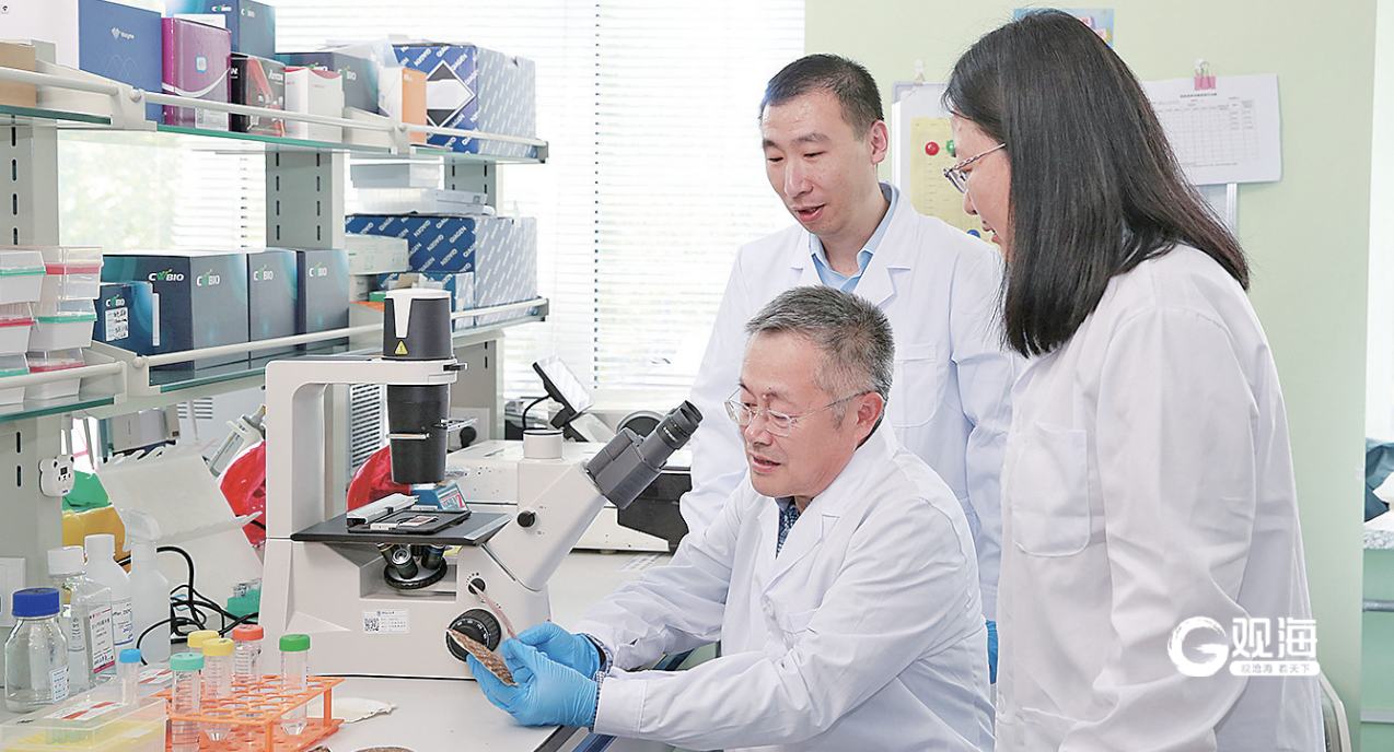 包振民(下)与团队成员探讨实验进展。刘莅 摄