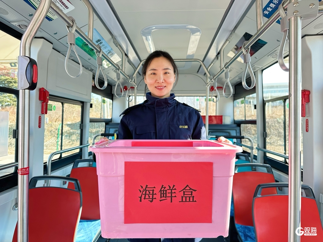 同时,针对市民采购海鲜后存放难、易渗水的困惑,驾驶员林葵葵特意在车厢内配备“海鲜盒”,供乘客在行程中临时存放海蛎子等海鲜。这一举措不仅能有效为海鲜保鲜,避免袋子渗水导致的车厢异味,更能保持车厢环境整洁,让每位乘客都能拥有清爽舒适的乘车体验。“有了海鲜盒,就不用担心袋子漏水弄脏座位了,且新车又稳又暖和,太贴心了!”刚从码头采购完海蛎子的市民王女士点赞道。
