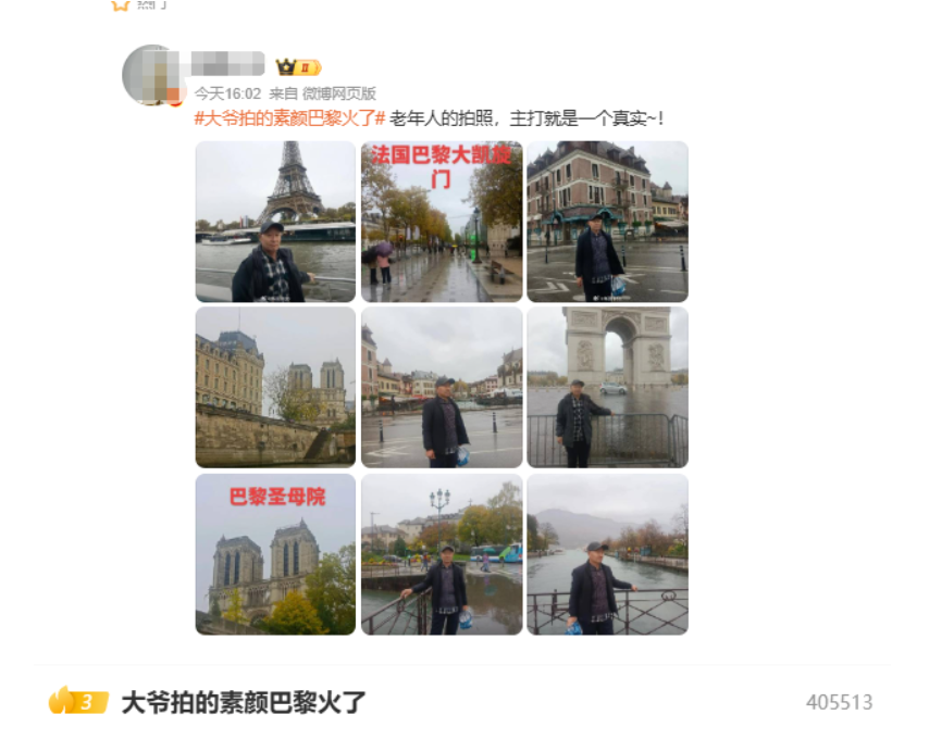 相关话题“大爷拍的素颜巴黎火了”