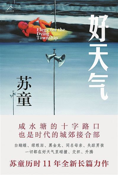 一部结合了乡土与魔幻气质的城乡接合部的年代变迁史,一方南方不为人知的土地在时代发展中的爱恨悲欢。以池塘为界的城乡两个家庭,同名的女主人,同龄的孩子们,几十年风雨恩怨羁绊,都随着咸水塘彩色天空消失而烟消云散。作家创造了一种虚拟的富有故事性的地方志和回忆录。书封上的英文书名直译为“正在消亡的小镇之挽歌”,点明了小说的主题。作家暌违十余年的第十部长篇,以气候的状态隐喻情感、历史和命运,编织一幅新旧交织的既真实又带着荒诞与灵异色彩的叙事长卷。