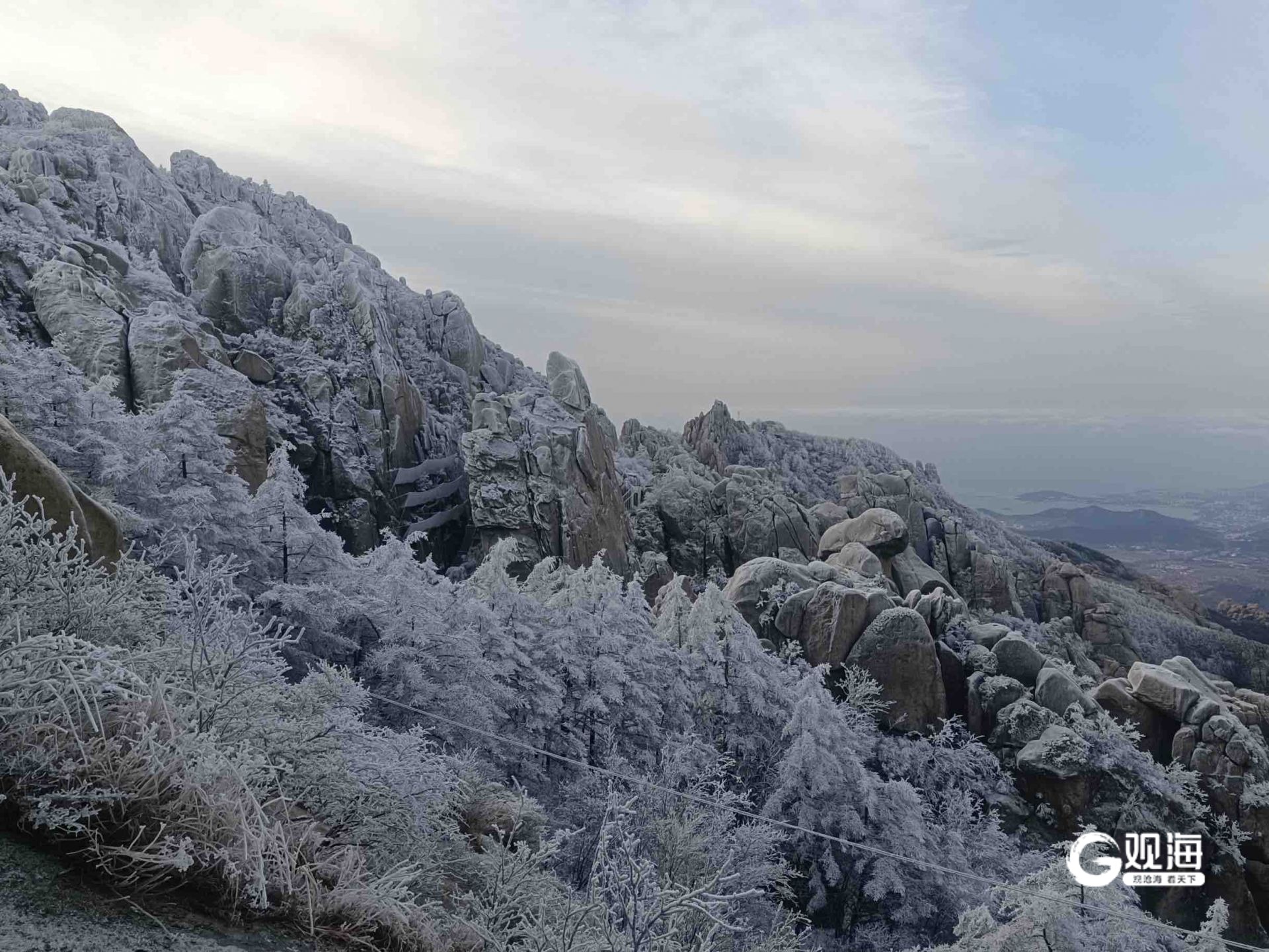 银装素裹的崂山冬景。崂山风景区供图