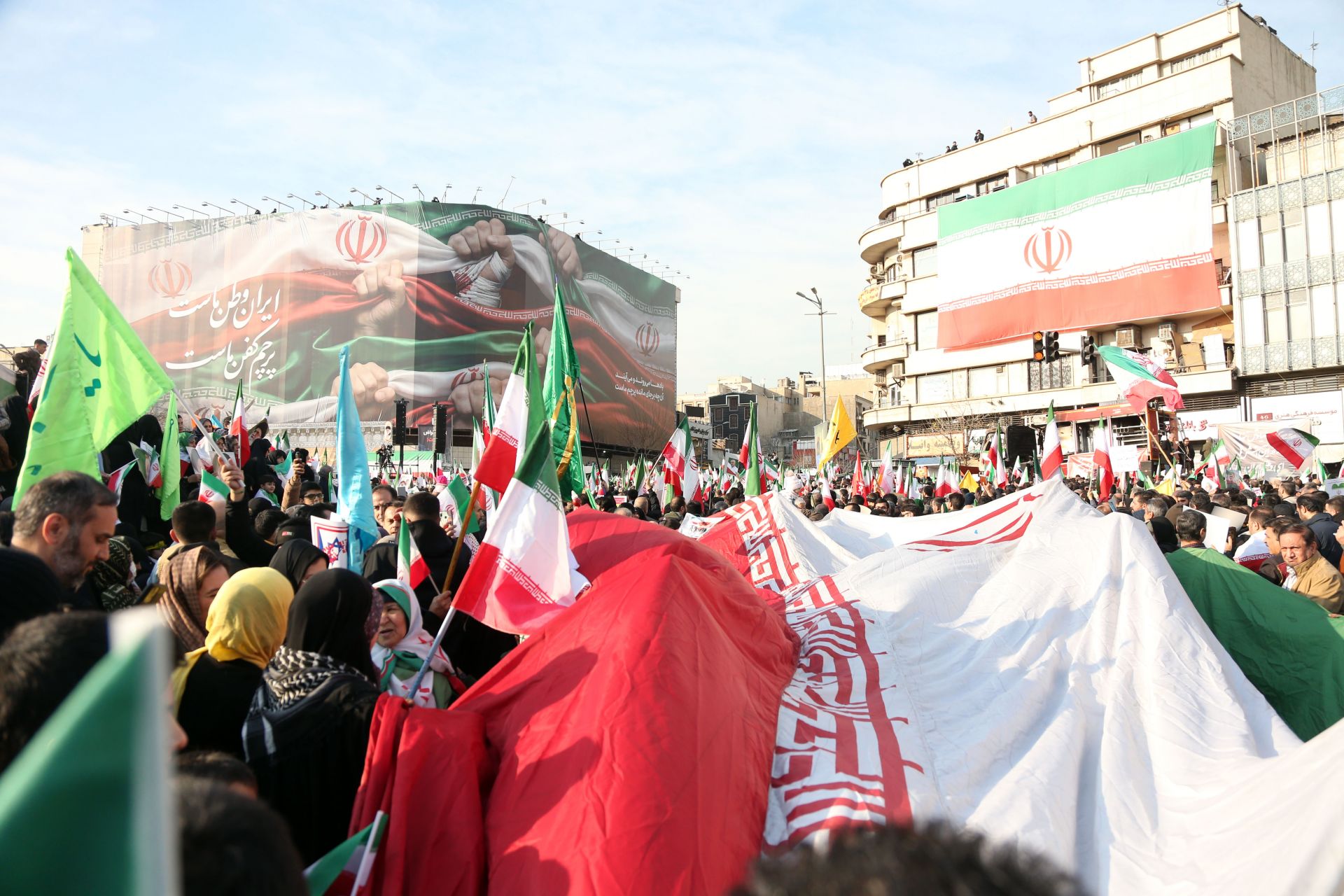 1月12日,在伊朗首都德黑兰,人们参加集会。新华社记者 沙达提 摄