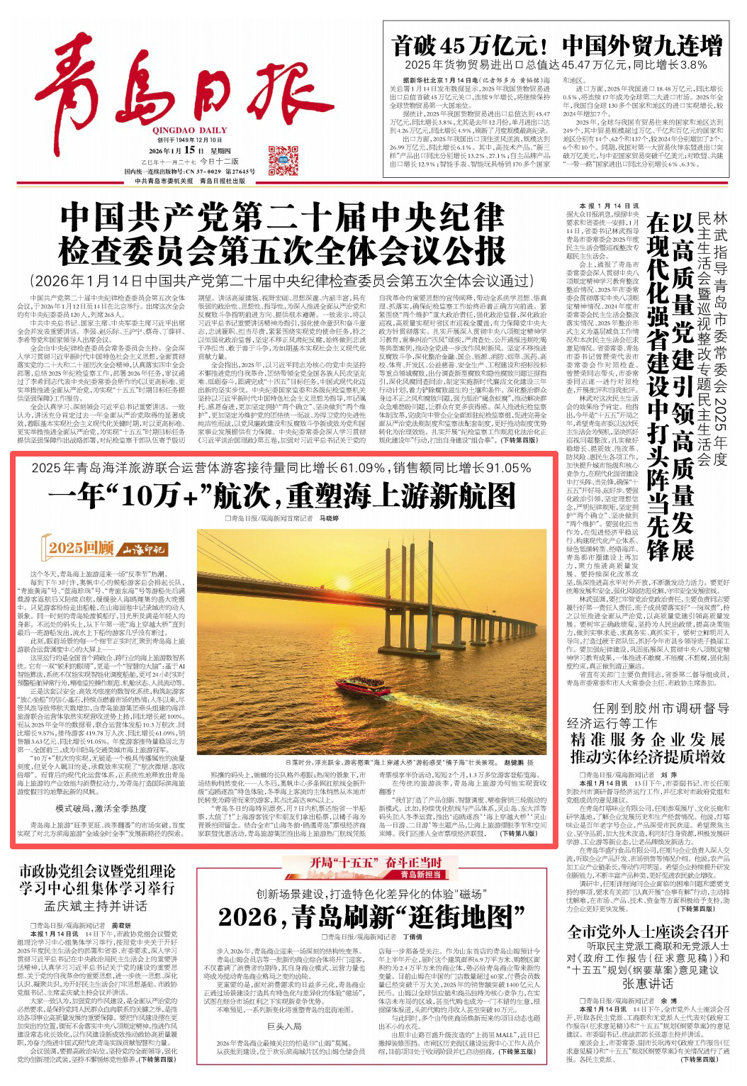 青岛日报2026年1月15日1版