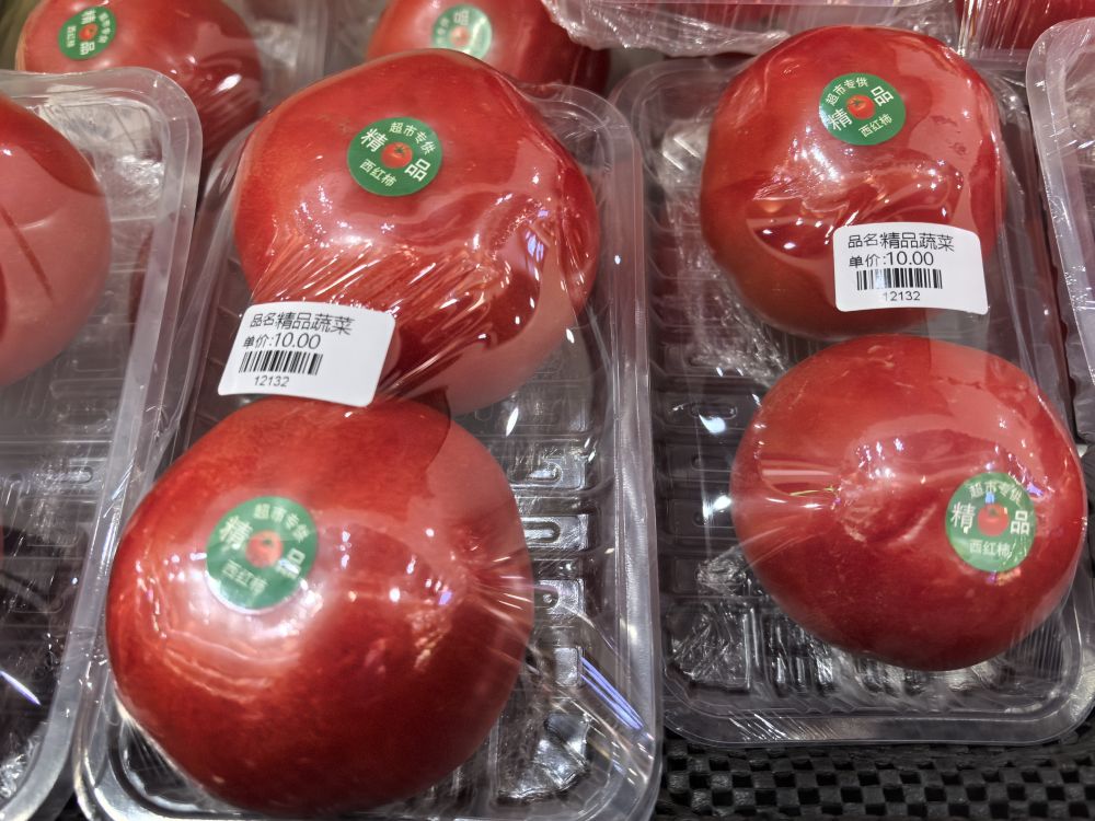 记者近日走进北京多家商超、菜市场调研发现,散装的“平价”“特价”西红柿价格约5至7元一斤,带包装的西红柿每斤约10至18元。