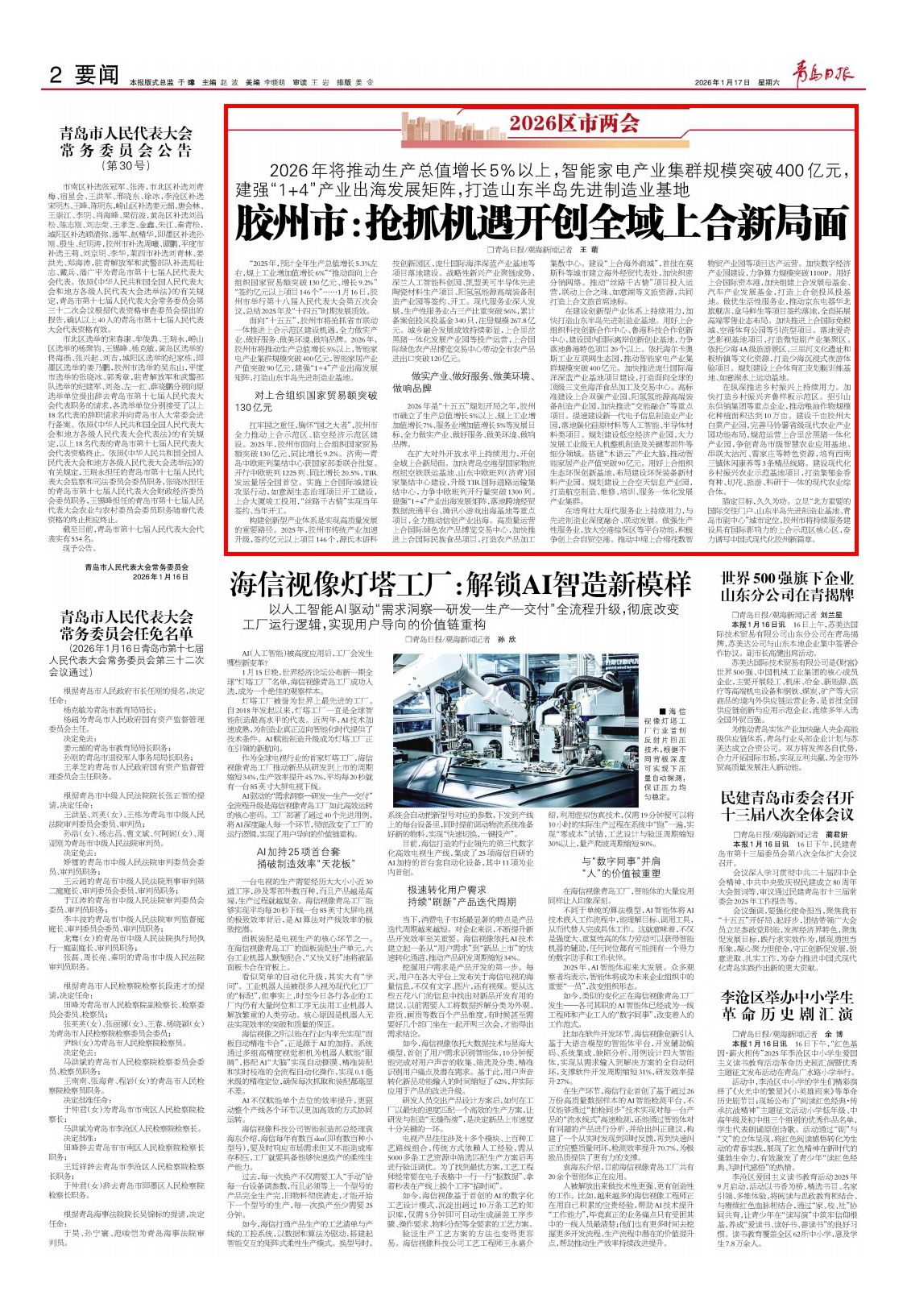 2026年将推动生产总值增长5%以上,智能家电产业集群规模突破400亿元,建强“1+4”产业出海发展矩阵,打造山东半岛先进制造业基地