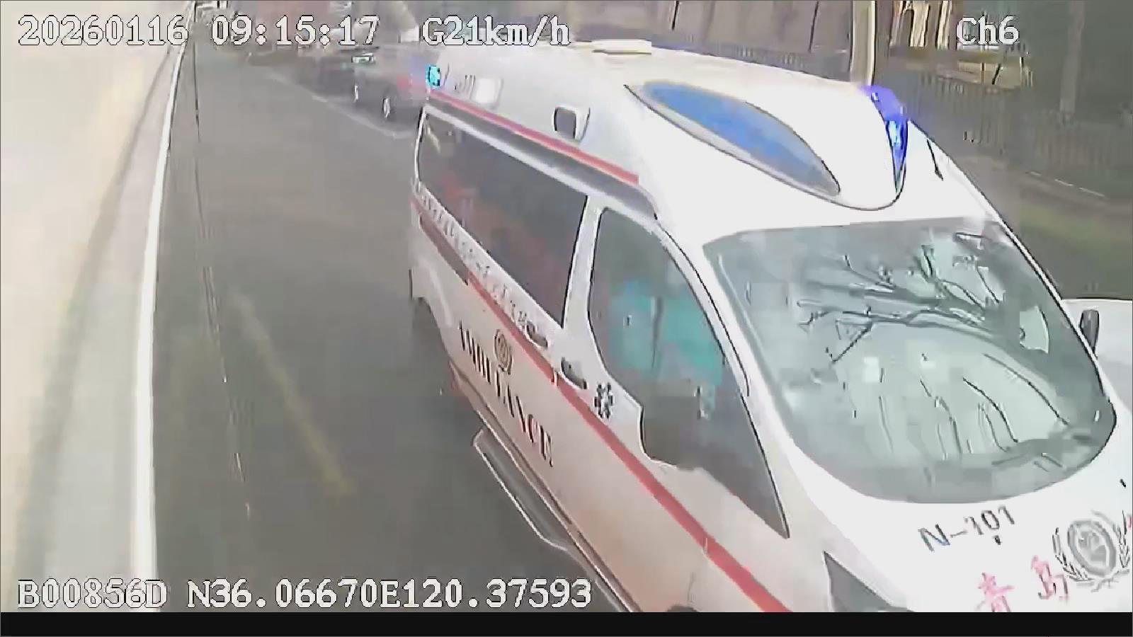 李成起礼让的不仅是行人。1月16日晚高峰,他驾车行至抚顺路鞍山二路站点附近,听闻鸣笛声后立即减速观察,待右侧救护车先行后才继续运营。1月19日上午,在抚顺路山东路附近,他再次重复了减速、停靠、示意的规范流程,确保救护车优先通过。李成起认为,救护车的鸣笛是生命的信号,礼让是责任更是对生命的敬畏。