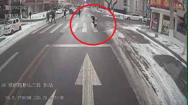 19日9时许,青岛经历一夜降雪,部分道路结冰湿滑。李成起驾驶车辆行至人民路抚顺路站点附近时,透过风雪注意到一位老人正牵着幼童在斑马线旁迟疑。雪天路滑,老人步伐谨慎,孩子紧紧依偎。李成起立即轻踩刹车,将车辆稳稳停住,并抬手示意老人先行。“雪天路滑,老人家带着孩子过马路太危险,多等几分钟都是应该的。”他回忆说。
