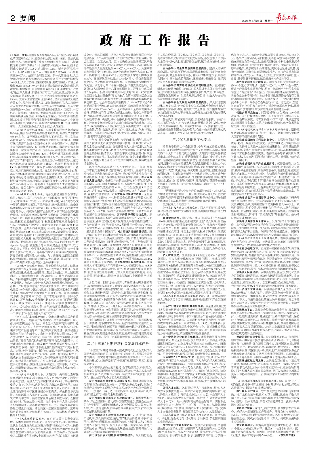 ——二〇二六年一月二十日在青岛市第十七届人民代表大会第五次会议上