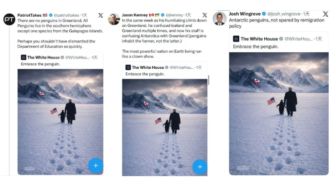 北极冰原上竟出现“南极来客”,白宫这条荒诞帖文的评论区瞬间变成了大型科普现场。
