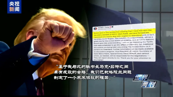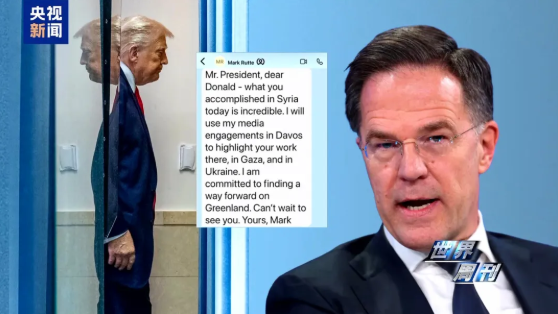 此前一天,美国总统特朗普还晒出北约秘书长吕特发给他的一条短信。短信里,吕特不仅对特朗普语气亲昵、大夸其功绩,还针对格陵兰问题作出明确表态。