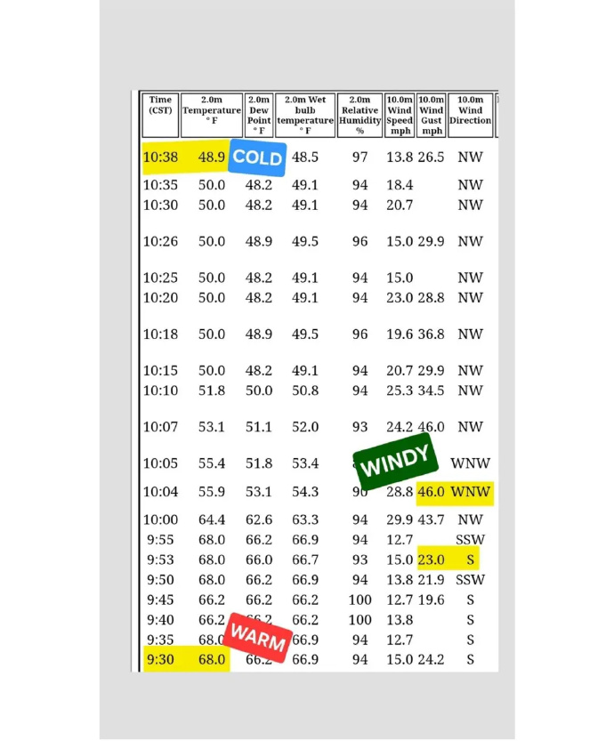 这次冬季风暴气温降幅之大,更是令人咋舌。社交平台上,根据气象学家发帖,密西西比州格尔夫波特气象站的数据显示,气温一小时内降幅达到了10.6℃。
