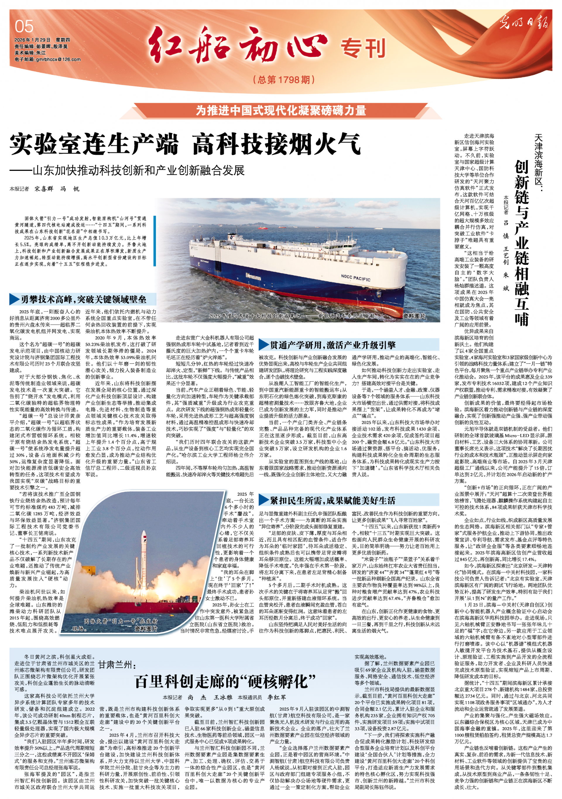 固体火箭“引力一号”成功发射,智能盾构机“山河号”贯通黄河隧道,第四代核电站建成投运……“十四五”期间,一系列科技成果在山东科技创新“花名册”中相继书写。