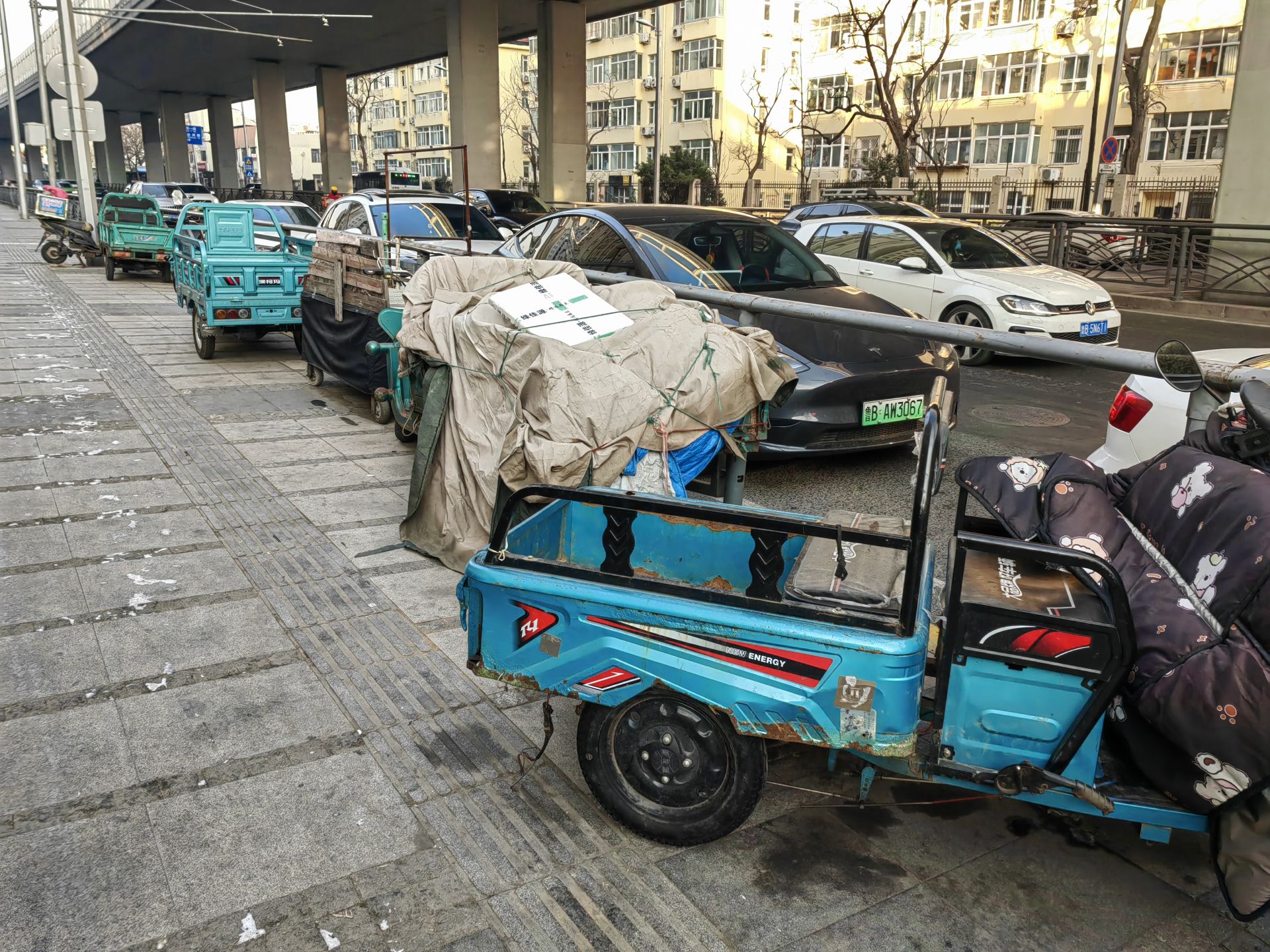青岛日报/观海新闻1月30日讯 “早高峰期间,市北区十五大街农贸市场北门人行道停放多辆三轮车,影响市民通行。”近日,有市民在民生在线栏目留言,反映市北区延安路南侧人行道乱停车问题。