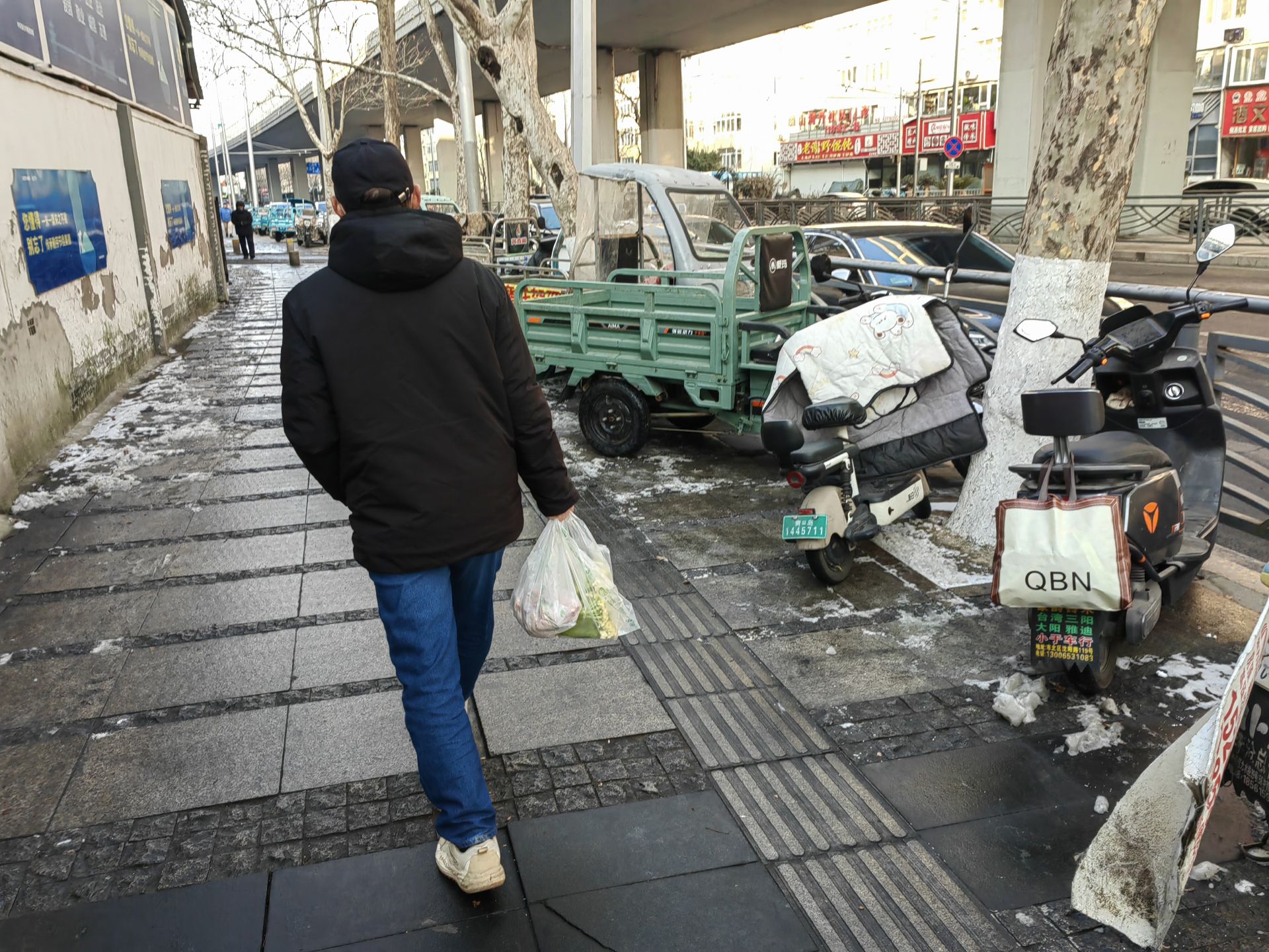 记者在现场看到,十五大街农贸市场北门门外即为延安路人行道,早高峰期间,该人行道停放了十几辆电动三轮车,部分车辆还占据了盲道。“早高峰期间,不少市民在农贸市场采购新鲜食材,车辆占据人行道,阻碍交通。”市民胡先生表示。