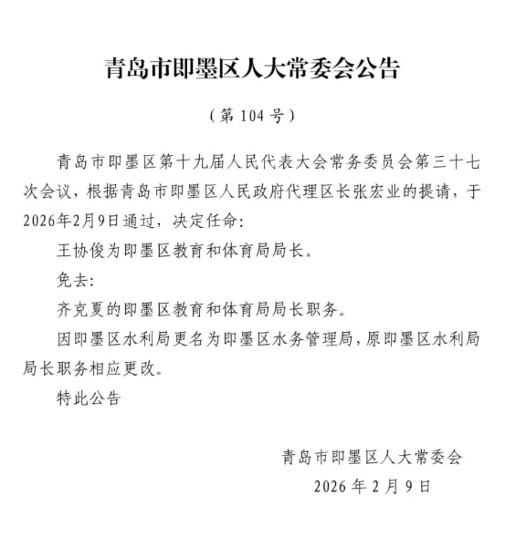 即墨区发布最新人事任免