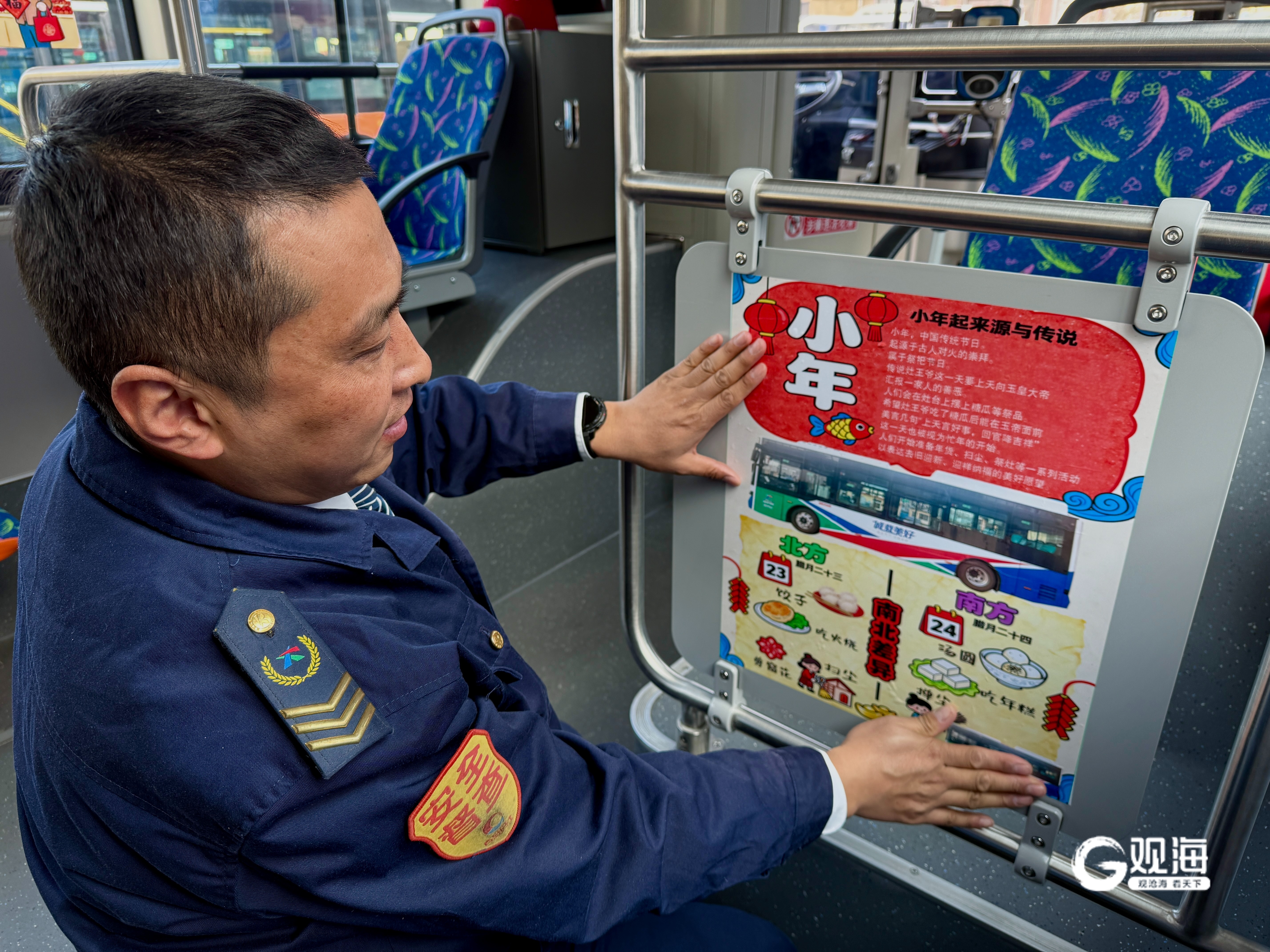青岛日报社/观海新闻2月10日讯 小年至,忙年启。作为春节的“前哨”,小年承载着丰富的民俗文化。2月9日,青岛城运控股公交集团李沧巴士公司115路驾驶员江继岳别出心裁,提前打造“年画”主题车厢,让市民在乘车时既能感受传统文化,又能共享节日喜悦。