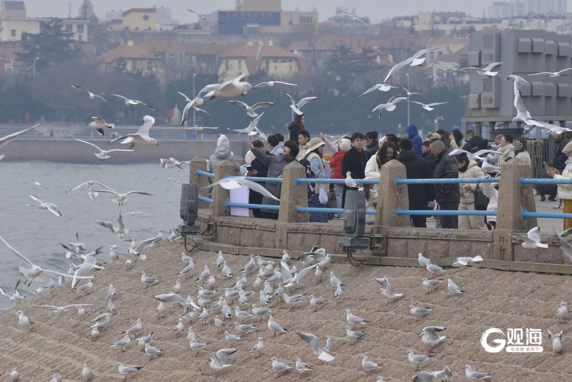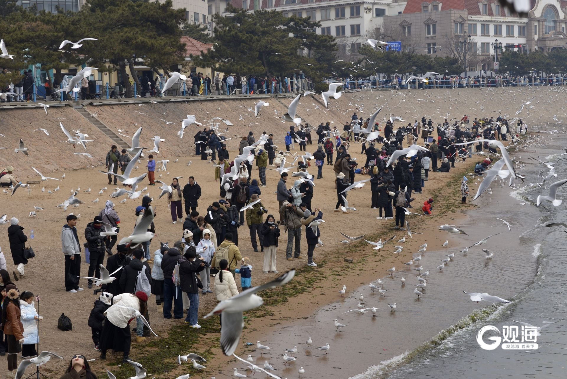 - 人与鸥的双向奔赴,热闹得像青岛冬日专属的空中派对。