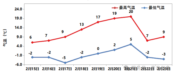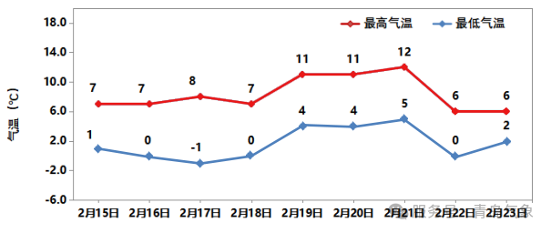 图1 2月15日—23日青岛市区气温预报