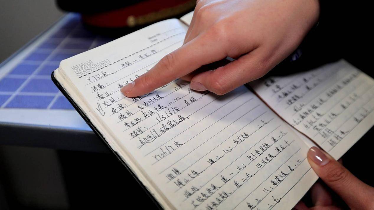 (“齐鲁1号”副列车长刘效君把沿线大集信息收集了一本子)