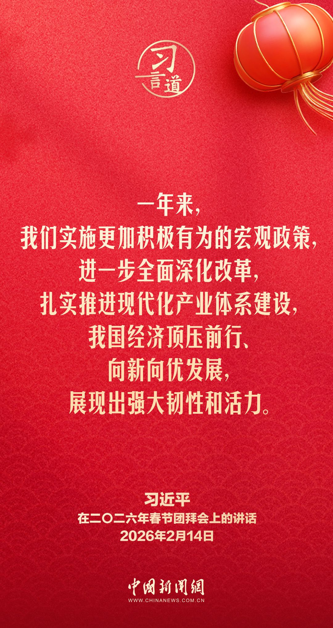 2月14日,中共中央、国务院在人民大会堂举行2026年春节团拜会。中共中央总书记、国家主席、中央军委主席习近平发表讲话,代表党中央和国务院,向全国各族人民,向香港特别行政区同胞、澳门特别行政区同胞、台湾同胞和海外侨胞拜年。他指出—— 责任编辑:王凤一 0