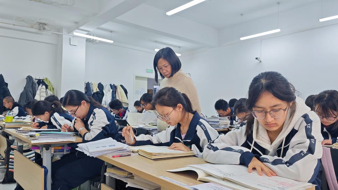 “姜老师,除了会‘看班’,你还会干啥!”有时,天山班的老师会半开玩笑地抱怨姜老师“太卷了”——所谓“看班”,就是从8点半开始的早读直至夜里结束的晚自习,她的身影总会伏在教室后排的小桌或出门右拐的办公室中。
