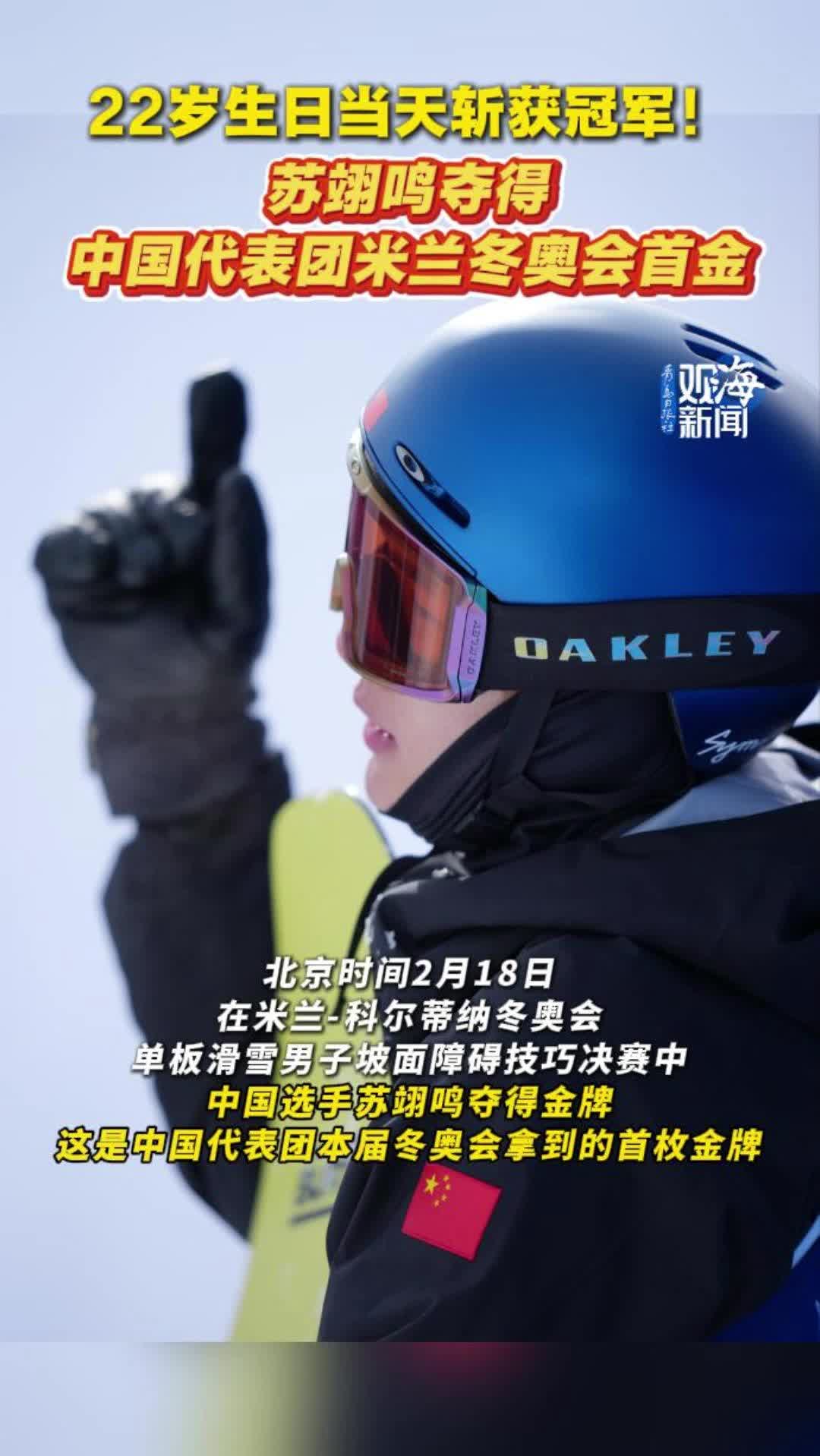 北京时间2月18日,在米兰-科尔蒂纳冬奥会上,中国选手苏翊鸣、徐梦桃分别夺得男子坡面障碍技巧、自由式滑雪女子空中技巧金牌,中国队一天内接连收获两枚金牌。