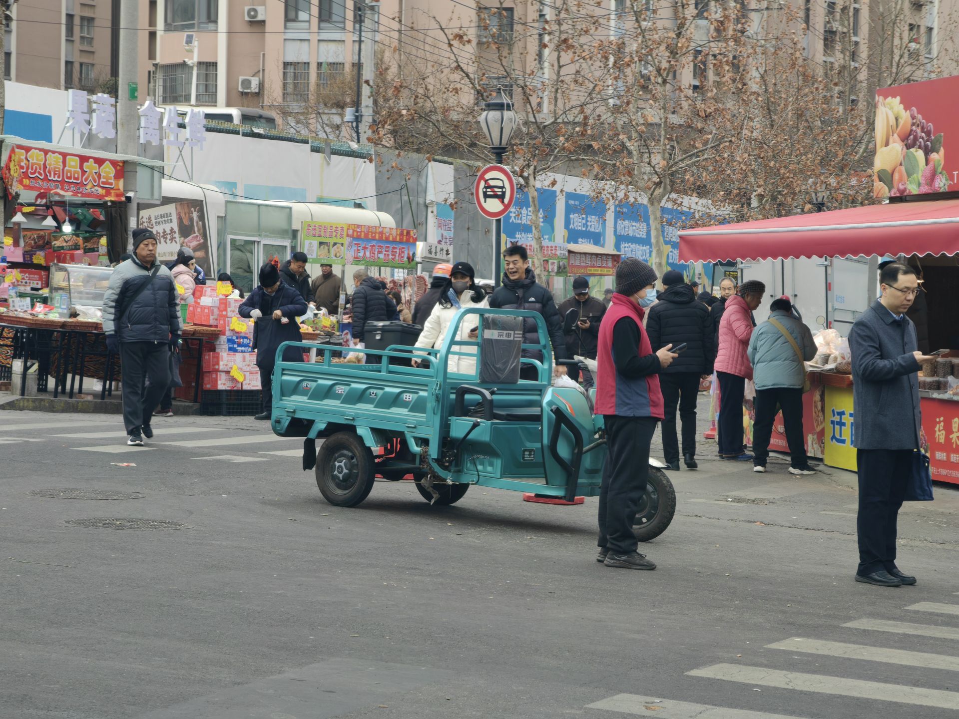 “标山路两侧建有多个小区,开车出地下车库后必经这段路,商贩在路口占道经营,影响车辆通行。”家住附近小区的李先生说,车来车往,市民扎堆在路口买年货也不安全。