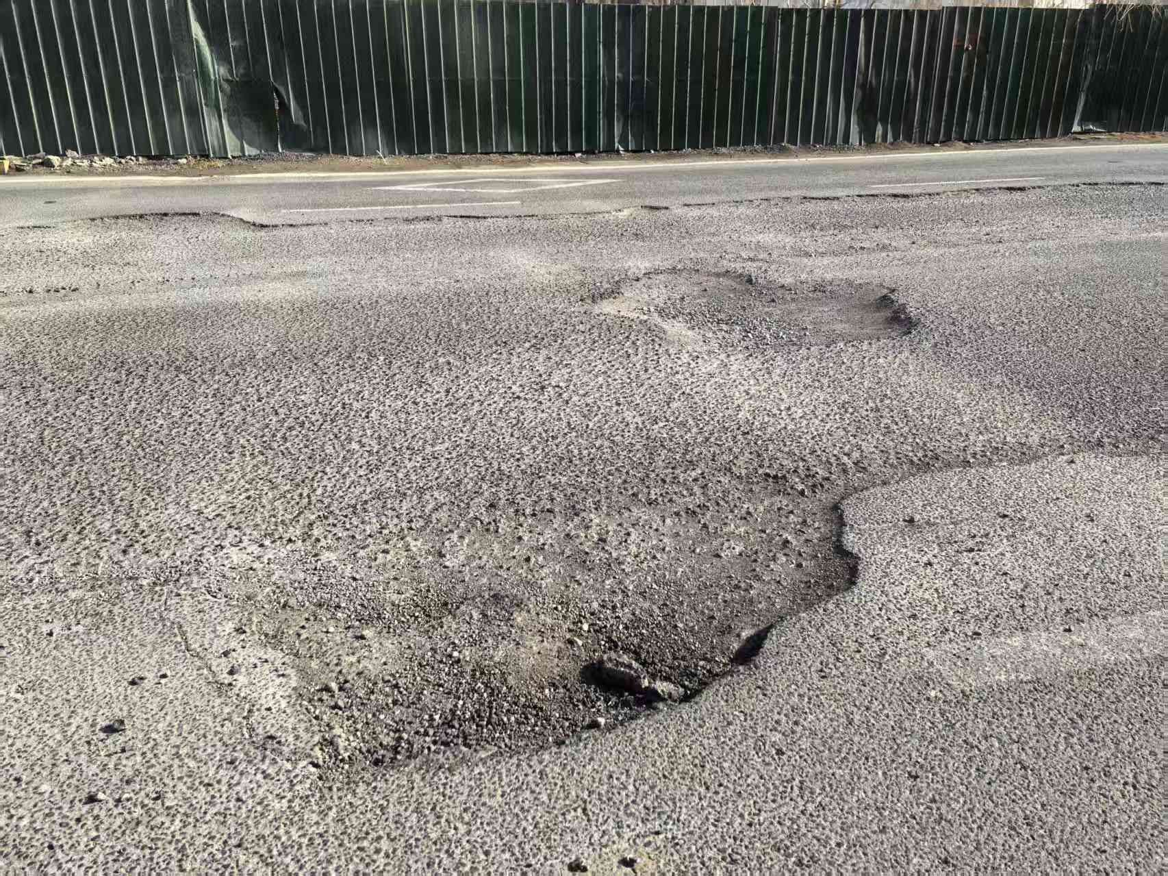 据了解,台柳路施工为市北区地下管线升级改造项目-台柳路雨污水管翻建,今年1月底完工,道路路面已恢复至下面层,仅剩上层沥青未铺设,由于天气原因沥青无法完全粘合,车辆通过后产生碎石,后形成坑洼。记者在现场看到,这些坑洼处大小不一,大的坑洼处直径超过50厘米,车辆通过时,车身明显摇晃,此外,施工开挖处路面与正常路面存在高差,影响车辆通行。