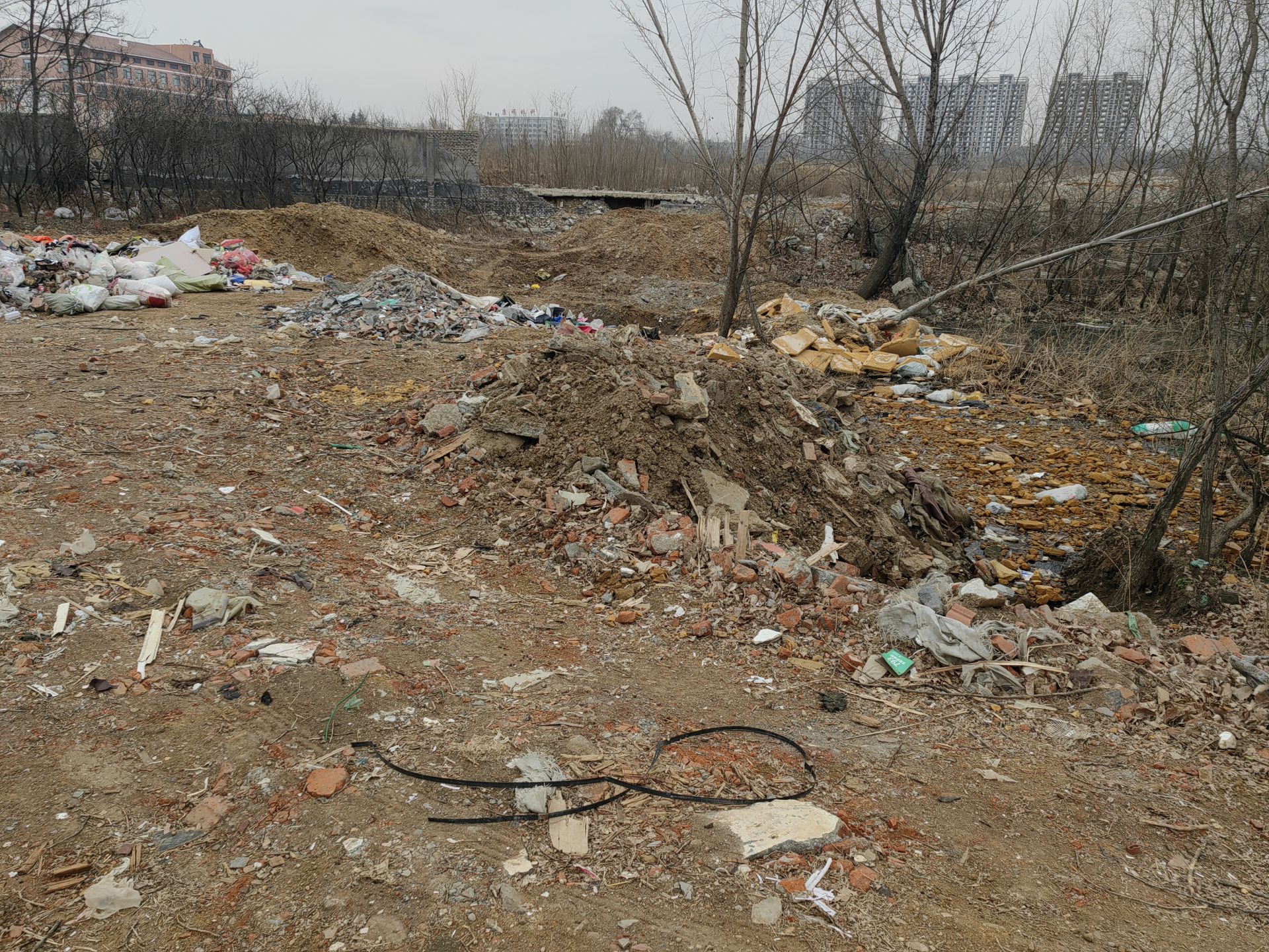 记者在现场看到,店子河南岸有一片树林,树下存有建筑垃圾和生活垃圾,这些垃圾距离河道不足5米远,环境十分脏乱。“这些垃圾春节前就已存在,距离河道还这么近,一旦下雨,很可能污染河道。”一位村民表示。