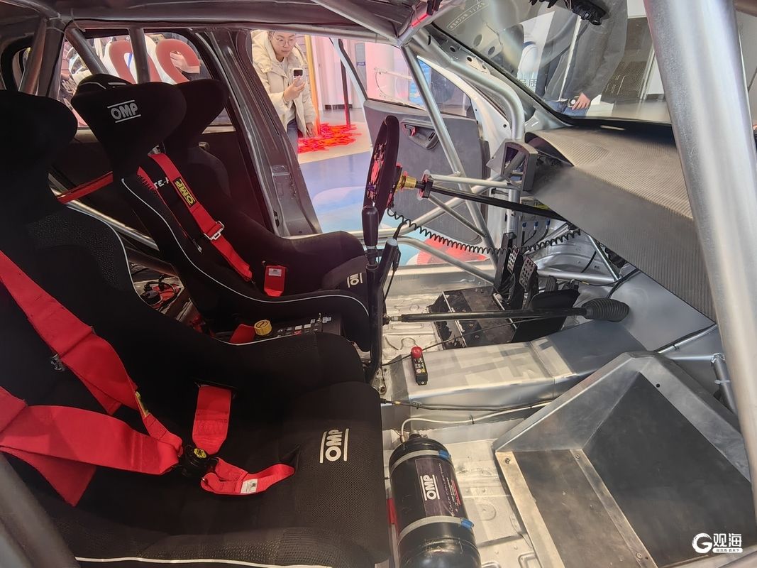 活动现场,工作人员向媒体详细解读了这台“完全体”赛车的特别之处。相较于《飞驰人生2》中造价约200万元至300万元的原型车,眼前这台新车开发成本约为500万元。整车围绕拉力赛的标准进行了彻底改装:核心动力单元换装了三代半的EA888发动机,并匹配了价值约170万元的X-Track 6速序列式四驱变速箱,可实现50毫秒的极速换挡。