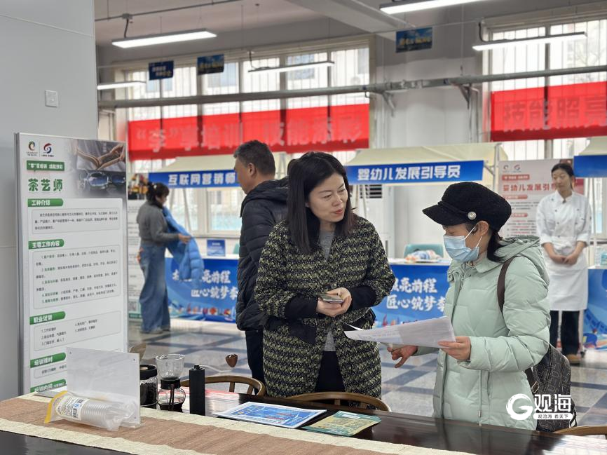 在“培训集市”专区,多家职业培训学校现场进行多工种培训展示,涵盖互联网营销师、营养师、电工、家政、面点、茶艺等当下热门培训项目。实现同步岗位对接,培训就业一站直达,打造了“培训就在招聘现场”的场景融合新模式。