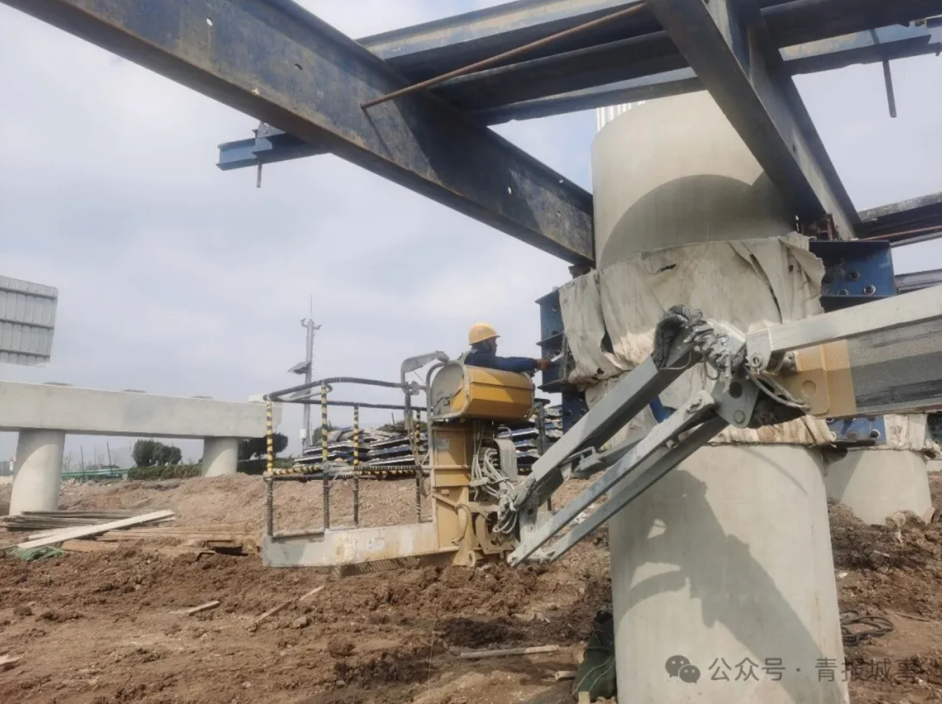 约7米高的白色桥墩高耸挺立,挖掘机、举臂车、吊车等机械设备有序作业,50余名施工人员坚守在各自岗位上,加紧进行盖梁施工……3月6日,记者走进青兰高速河套至黄岛段改扩建工程ZT1标段,一派繁忙的施工建设场景映入眼帘。
