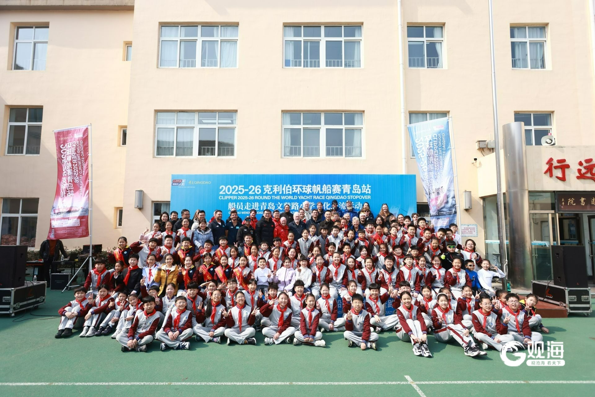 青岛日报/观海新闻讯 3月10日上午,青岛文登路小学的校园里彩旗飘扬、笑语盈盈,克利伯环球帆船赛青岛站船员文化交流活动在此温馨启幕。克利伯环球帆船赛船员代表一行40人与文登路小学师生齐聚一堂,在碧海之畔谱写了一曲“航海精神”与“传统文化”交融的动人乐章。