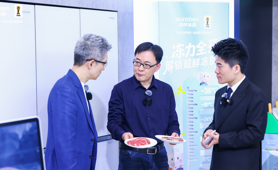为了直观展示这款冰箱的核心实力,栾博士邀请两位嘉宾玩起“找不同”游戏。他先端上两块同样冷冻30天、刚刚解冻的牛排,左边一块从普通冰箱拿出,表面干黄发柴、渗出血水,右边一块从大冰象冰箱拿出,截面鲜红、肉质紧实、解冻无血水。面对强烈反差,栾博士揭秘:奥秘在于“大冰象”搭载的 -36℃冰封锁鲜技术。他解释道:“冷冻室温度和食材温度之间的温差越大,食材就能越快通过最大冰晶生成带,形成的小冰晶不会刺破细胞,从而锁住汁液和营养。”数据显示,相比普通冰箱,“大冰象”冻透20斤食材仅需9个多小时,肉类通过最大冰晶带时间缩短45%,汁液流失率降低47%。可以说,容声大冰象冰箱把冻得透、冻得多、冻得净做到了极致。
